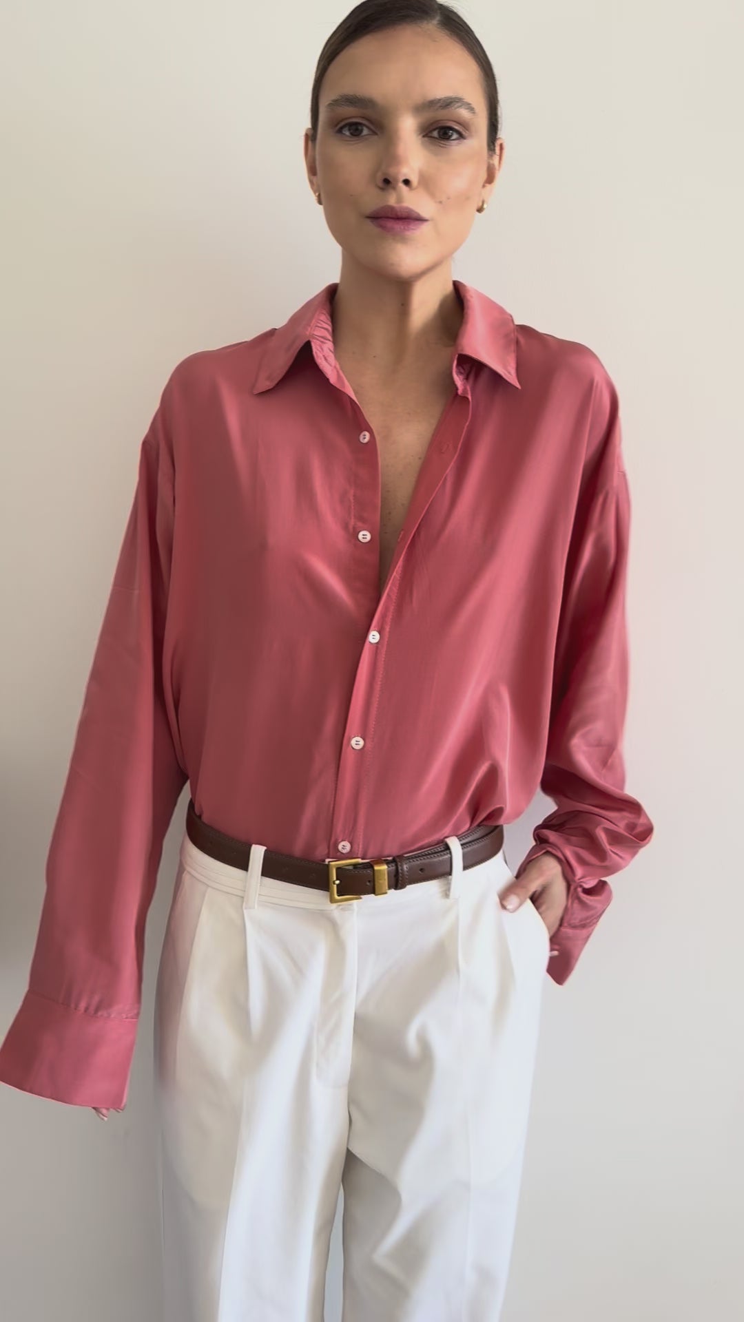 Nossa camisa em 100% seda natural – crepe de chine é puro toque, leveza e sofisticação. Com uma textura delicada e um caimento fluido, ela não gruda no corpo: desliza como o vento e veste com liberdade.